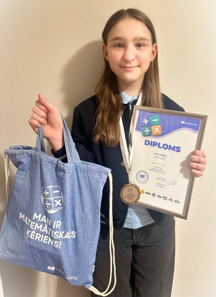6.D klases skolnieci Leilu Pallo ar iegūto 3. vietu, skolotāja Nadežda Koļeda;