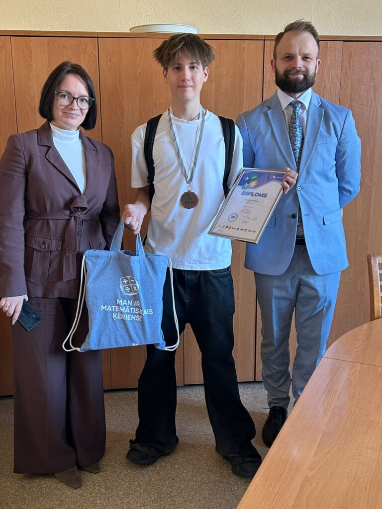 8.B klases skolēnu Timofeju Izotovu ar iegūto 3. vietu, skolotāja Darja Čevere.
